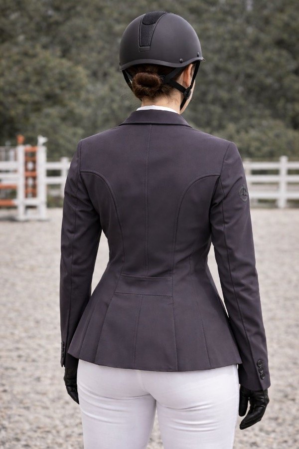 Este elegante saco de concurso de equitación combina funcionalidad deportiva y estilo clásico.